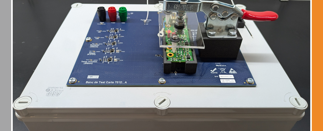 Ces bancs de tests intègrent des éléments électroniques et mécaniques sur mesure et sont conçus pour s’adapter parfaitement aux spécificités des cartes électroniques grâce à des PCBs customisés et des pièces imprimées en 3D, pour garantir une maintenance simplifiée de l’outillage de test.